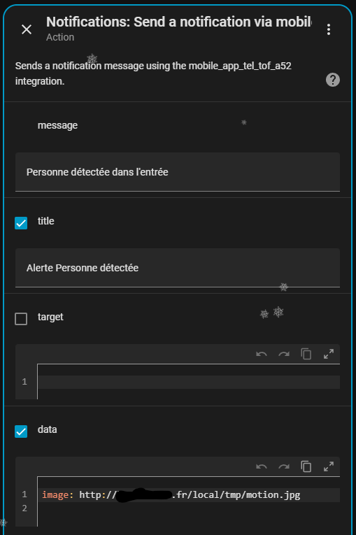 Ajouter une action -> Notification -> sélectionne le type de notfi que tu veux, dans mon cas : via mobile_app_tof_a52